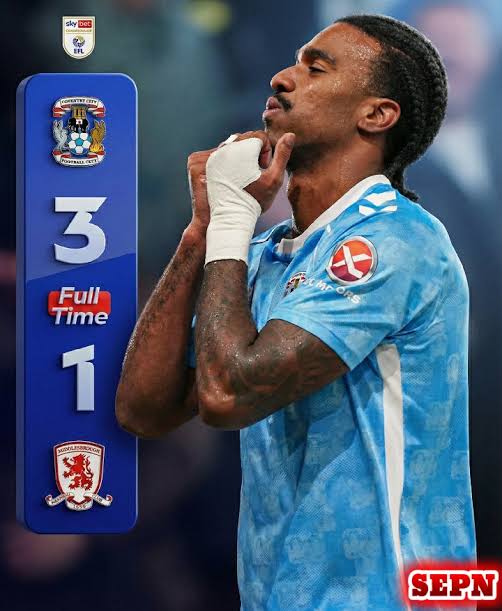 Wright doubled the advantage with a clinical strike inside the box, showcasing his positioning and instinct. Although Middlesbrough managed to pull one back and momentarily shift the momentum, Coventry responded with resilience rather than nerves. The Sky Blues maintained their structure, absorbed pressure, and continued to threaten on the break.