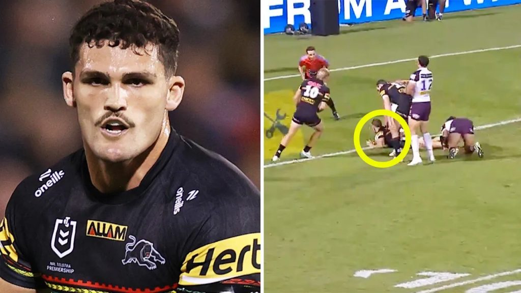 Nathan Cleary is facing a ban for this shot on Wests Tigers teenage winger Heamasi Makasini
